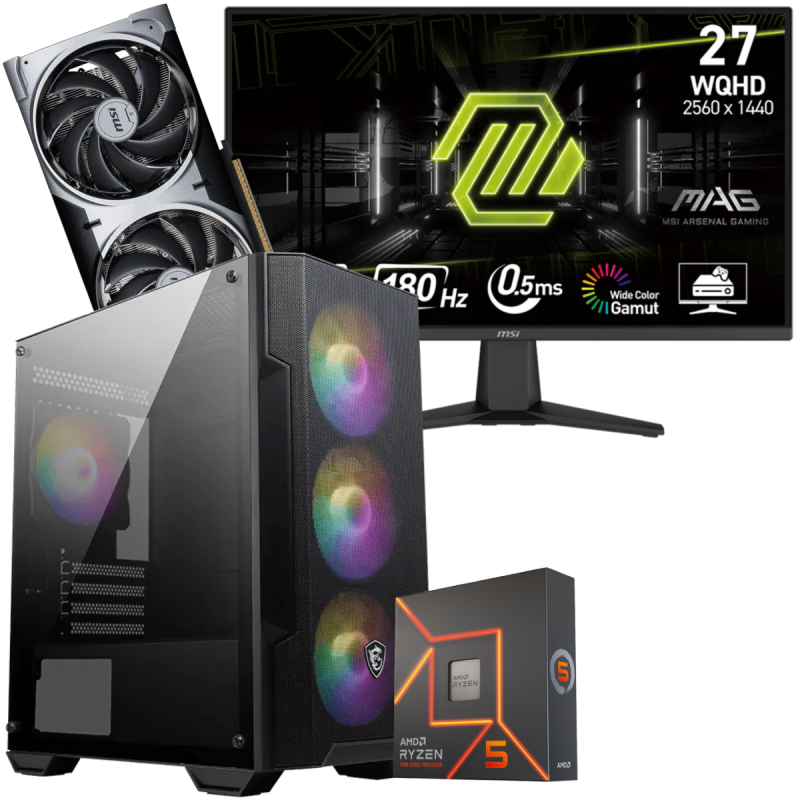 Setup Gamer Special Pc de Bureau Gaming / Ryzen 5 7600X / RTX 5070 12G / 32 Go Avec Écran Gaming MSI MAG 27" WQHD IPS / 180 Hz
