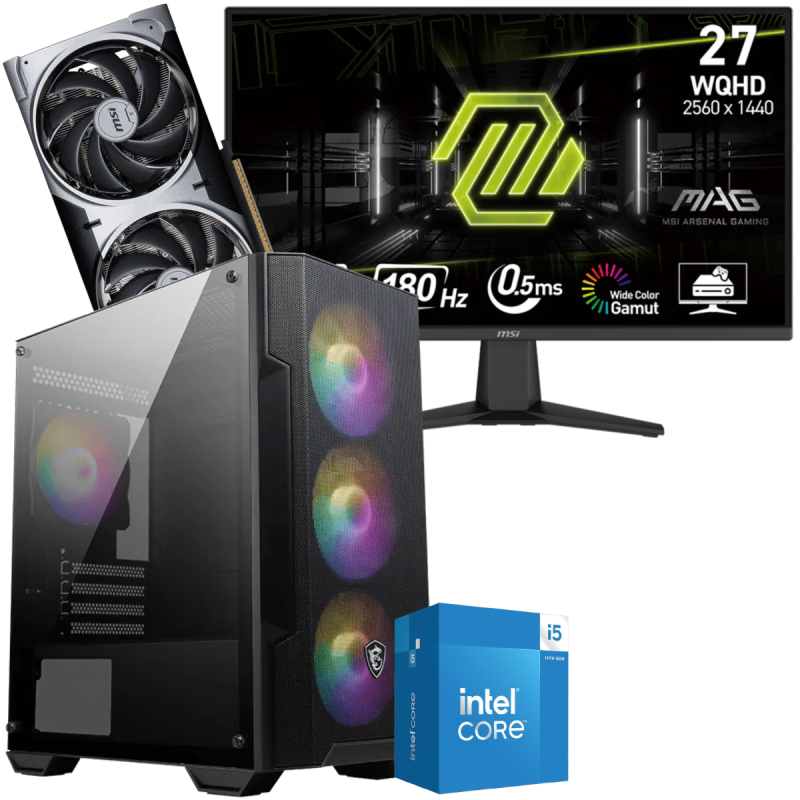 Setup Gamer Special Pc de Bureau Gaming / i5-14400F / RTX 5070 12G / 32 Go Avec Écran Gaming MSI MAG 27" WQHD IPS / 180 Hz