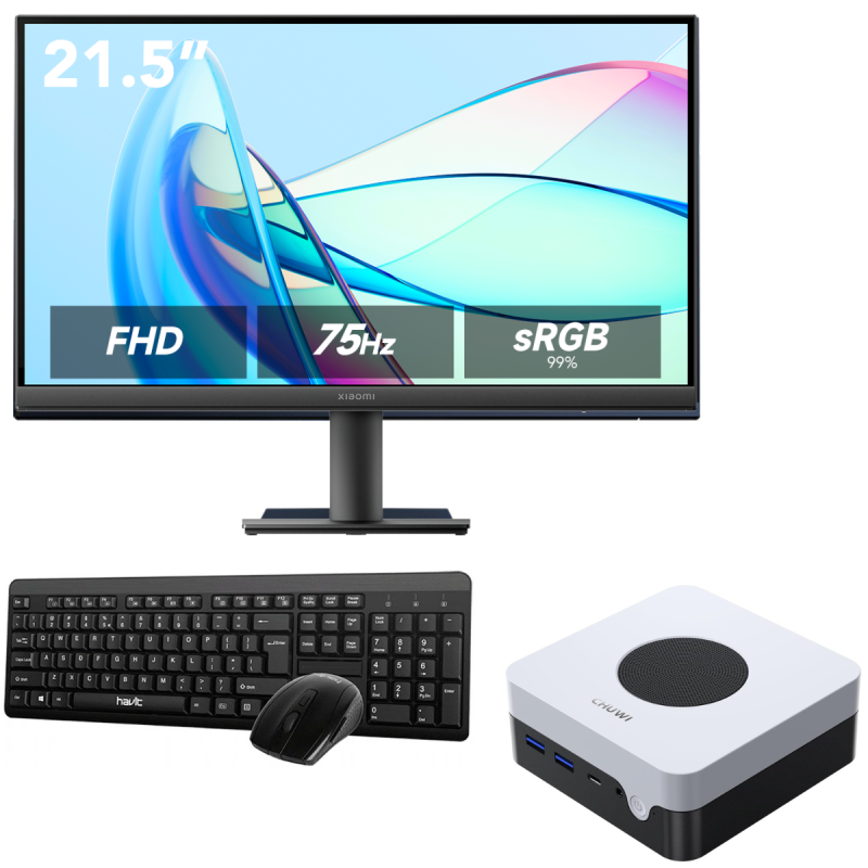 Mini Pc de bureau BCHUWI LarkBox X / i3-1220P / 8 Go / 256 Go SSD / Windows 11 / Blanc Avec ECRAN XIAOMI A22i EU 21.45'' FHD 75Hz