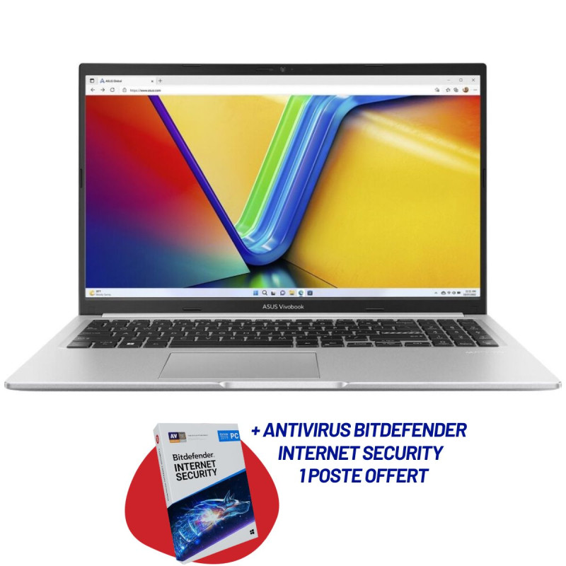 Pc Portable Asus VivoBook 15 X1502ZA / i5 12è Gén / 12 Go / Win11 / Silver + Antivirus Bitdefender Internet Security / 1 Poste Offert