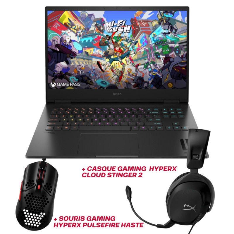 Écran 16.1" Full HD (1920 x 1080), 165 Hz, 7 ms, IPS, micro-bords, antireflet, lumière bleue réduite - Processeur Intel Core i9-14900HX 14ème génération, (jusqu’à 5.8 GHz, 36 Mo de mémoire cache) - Mémoire 16 Go DDR5-5600 MT/s - Disque SSD NVMe M.2 1 To - Carte graphique NVIDIA GeForce RTX 4070, 8 Go de mémoire GDDR6 dédiée - Clavier noir ombré rétroéclairé RGB, de grande taille, 4 zones, technologie anti-ghosting avec rollover sur 26 touches - Caméra HP True Vision FHD 1080p - Microphones numériques à double entrée intégrés - Deux haut-parleurs, HP Audio Boost, HyperX - 2x USB - 2x Thunderbolt 4 USB Type-C - 1x HDMI 2.1 - 1x port RJ-45 - 1x prise combinée casque/microphone - Wi-Fi 6E - Bluetooth 5.3 - Windows 11 - Couleur Noir - Garantie 1 an