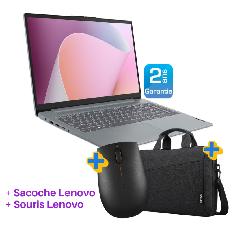 PC Portable Lenovo IdeaPad Slim 3 15AMN8 / Ryzen 3 7320U / 8 Go / 256 Go SSD / Gris / Windows 11 Avec Sacoche Lenovo