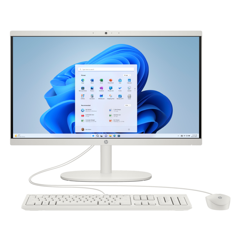 Écran 21.5" Full HD (1920 x 1080), VA, micro-bords, antireflet - Processeur Intel N100, (jusqu’à 3.4 GHz, 6 Mo de mémoire cache) - Mémoire 16 Go DDR5 - Disque SSD NVMe M.2 256 Go - Carte graphique Intel UHD Graphics Intégrée - Wi-Fi 6 - Bluetooth 5.3 - Haut-parleurs 2 W - 1x USB Type-C - 2x USB Type-A - 2x USB 2.0 Type-A - 1x prise combinée casque/microphone - 1x port RJ-45 - 1x sortie HDMI 1.4 - FreeDos - Couleur Blanc - Garantie 1 an Avec Ensemble Clavier et Souris filaire Blanc USB HP