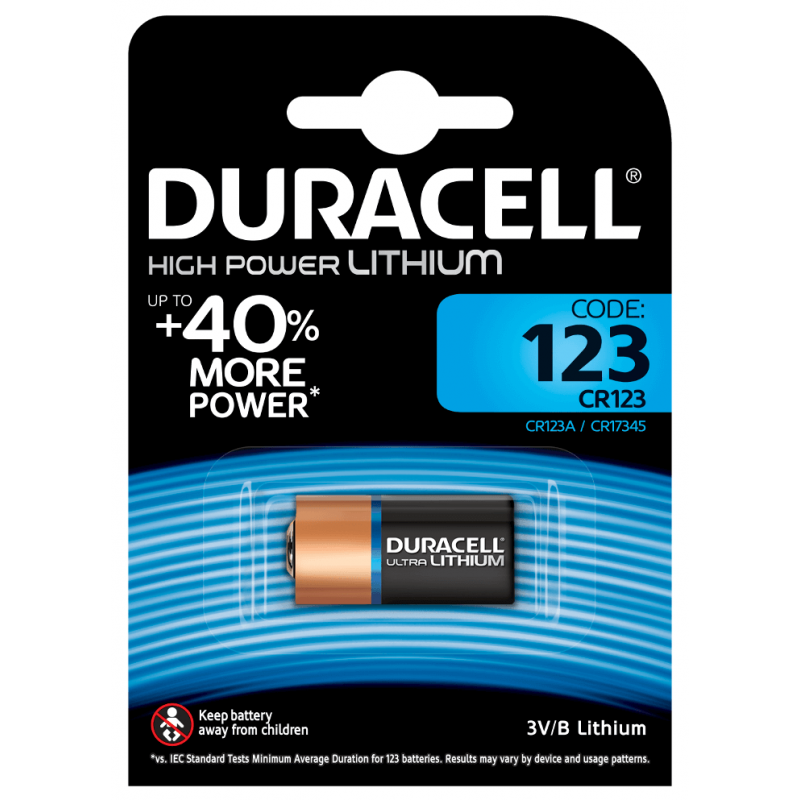 Pile Lithium Haute Puissance Duracell 123 - Tension 3 V - 1470 mAh - Format : 34 x 17 mm - Utilisation: Appareils photo numériques / Appareils reflex mono-objectif / Flash / Lampes portatives / Produits électroniques et plus