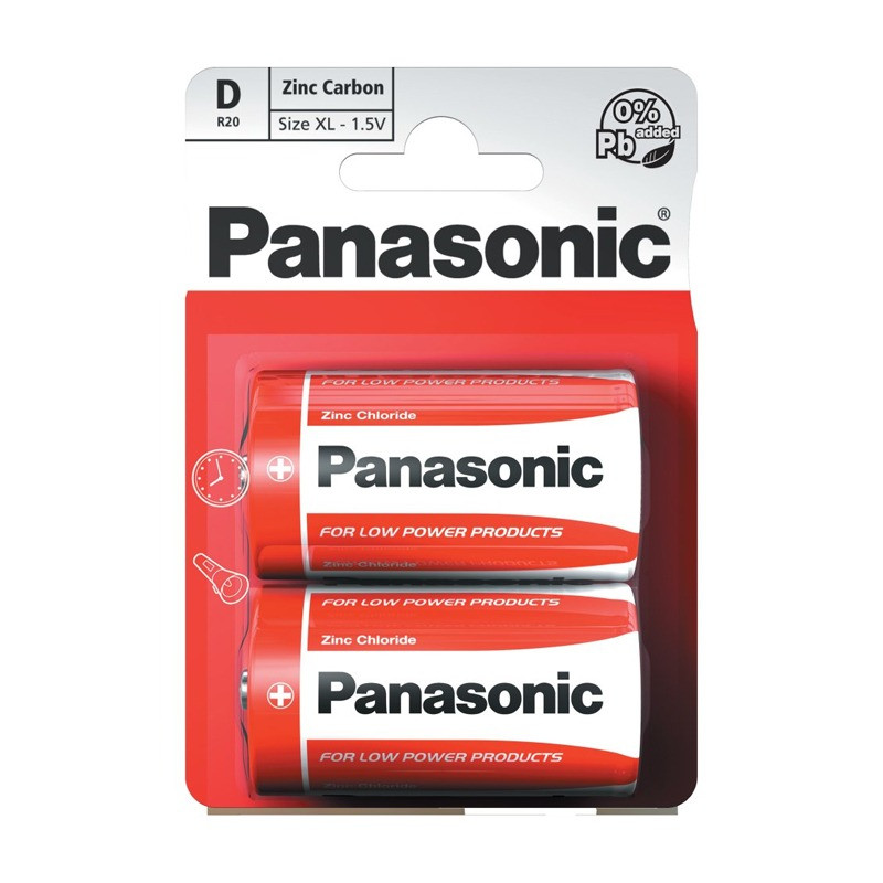 2x Piles PANASONIC - Tension 1.5 V - Type de batterie : D - Composition : Carbon Zinc
