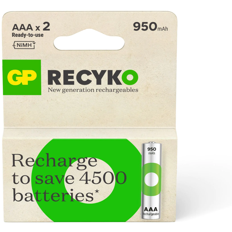 2 x Piles Rechargeables GP - Tension 1.2 V - Type de batterie : AAA - Capacité : 950 mAh - Compatible avec les appareils photo, pour les voitures télécommandées, les appareils photo numériques, les jouets, etc..