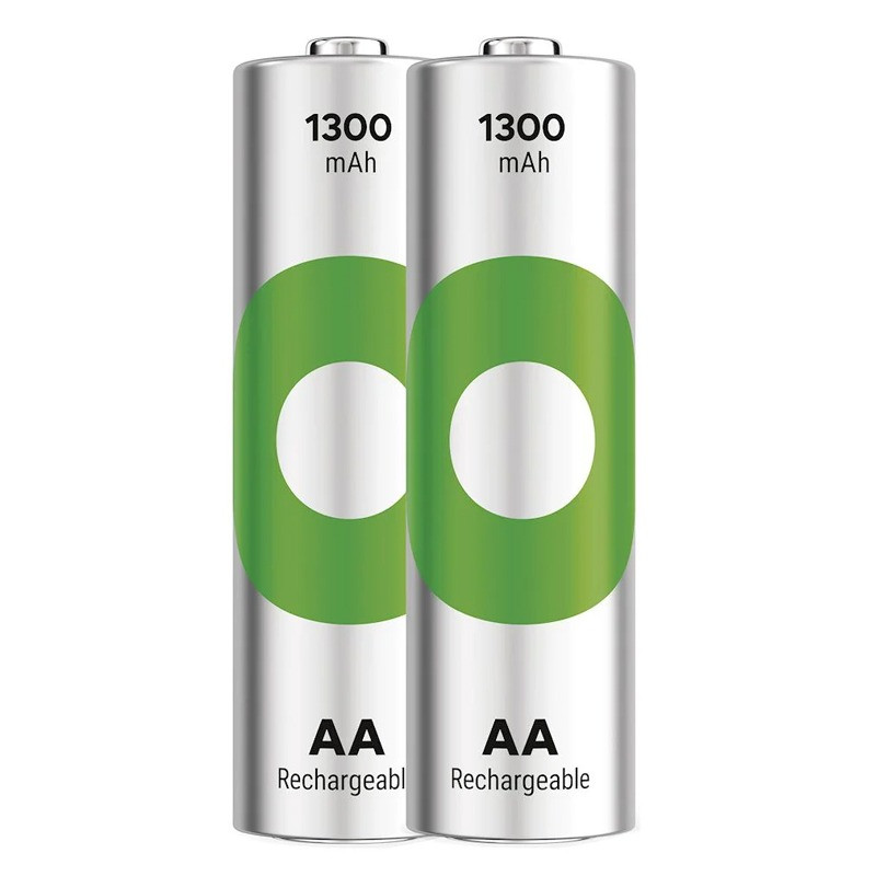 2 x Piles Rechargeables GP - Tension 1.2 V - Type de batterie : AA - Capacité : 1300 mAh - Compatible avec les appareils photo, pour les voitures télécommandées, les appareils photo numériques, les jouets, etc..