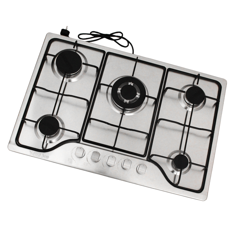 Plaque de cuisson encatrable StarOne - 5x Feux - Couleur Inox - Allumage automatique - Brûleurs à flamme pilotée - Grille noire en fonte émaillée - Dimensions Extérieur : 51 x 76.5 x 6.5 cm - Dimension Intérieur 47 x 72 x 4.5 cm - Garantie 1 an