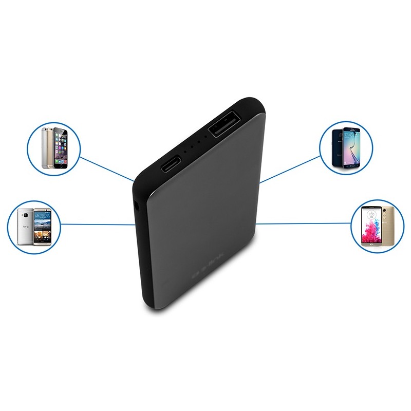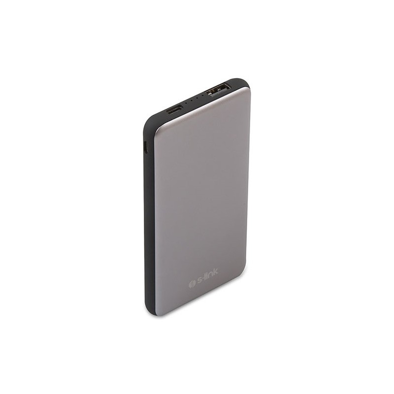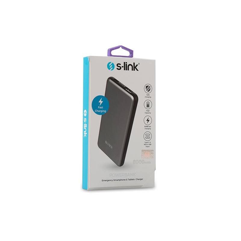 Power Bank S-Link IP-G88 - Puissance 8000 mAh - Fast Charging - 1x Port USB 5V/ 2.1A - 1x Entrée Micro USB 5V/ 2.1A - 1x Entrée USB Type C 5V/ 2.1A - Indicateur d'état de la batterie - Couleur Gris - Dimensions 13 x 6.5 x 1.5 cm - Garantie 1 an