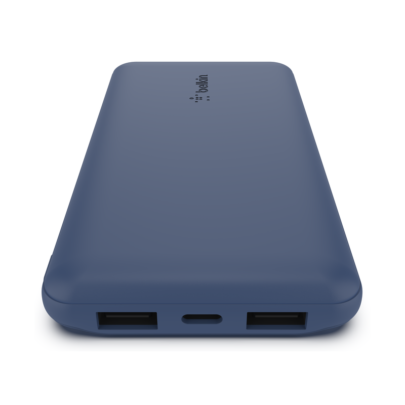 Power Bank Belkin BOOSTCHARGE - batterie externe avec Capacité de : 20 000 mAh - Recharge de trois appareils (max) avec deux ports USB-A (12 W) et un port USB-C (15 W) - Puissance de charge 15 W - Grande autonomie de batterie pour 78 heures (max) - Recharge rapide de zéro à 50 % en 35 minutes (iPhone 15 Pro) / en 45 minutes (Samsung Galaxy S23 Plus) - Voyant LED pour indiquer le niveau de charge restante de la batterie externe - Matériau plastiques - Couleur Bleu - Garantie 1 an