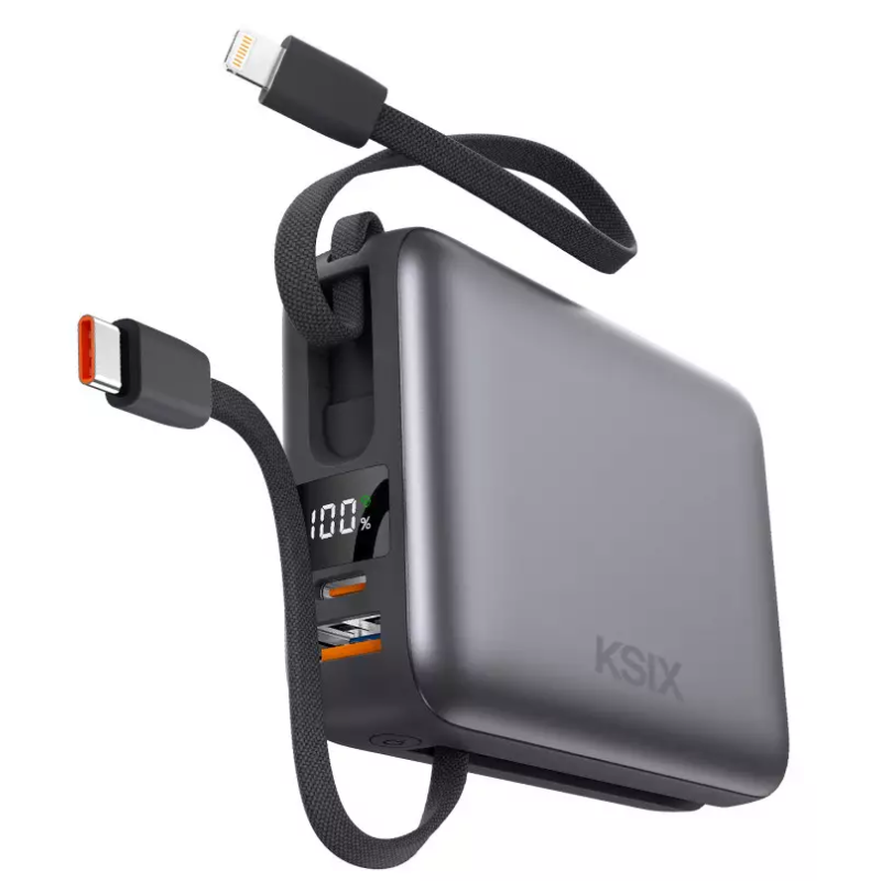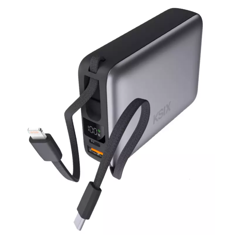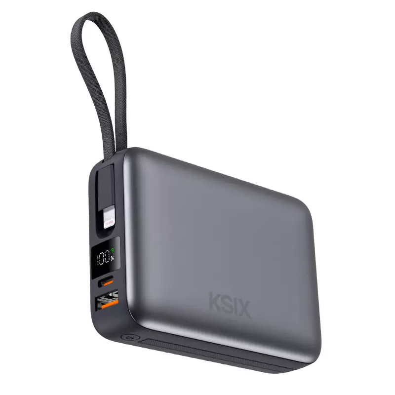 Power Bank KSIX 20 000 mAh, charge rapide PD 22,5 W, câbles USB-C et Lightning
