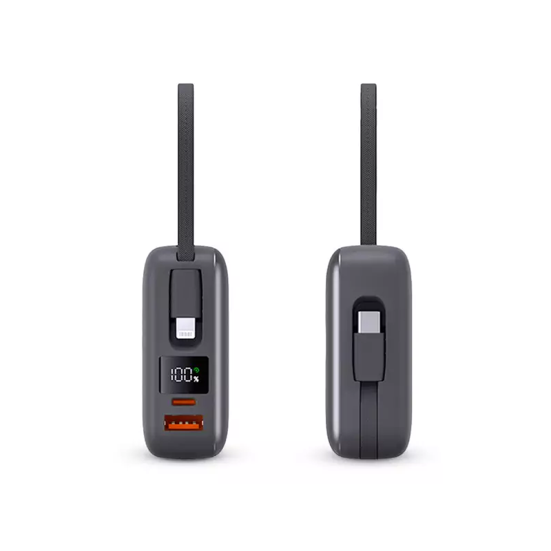 Capacité : 20 000 mAh - Technologie : Distribution d'énergie - Batterie : Polymère de lithium - Puissance maximale : 22.5 W (technologies Power Delivery) - câbles USB-C et Lightning intégrés - Ports : 1x USB-C, 1x USB-A - affichage LED - Type de charge : Simultanément (réseau + périphériques externes) Ultra-rapide - Couleur Gris