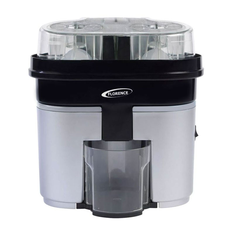 Presse Agrumes Double Entrée FLORENCE - Puissance : 350 W - Rendement élevé : Comprime 6 Oranges en 1min - Pratique et rapide - Tranche et presse avec le couvercle fermé - Interrupteur Marche / arrêt - Facile à utilisé - Couleur : Gris - Garantie : 1an