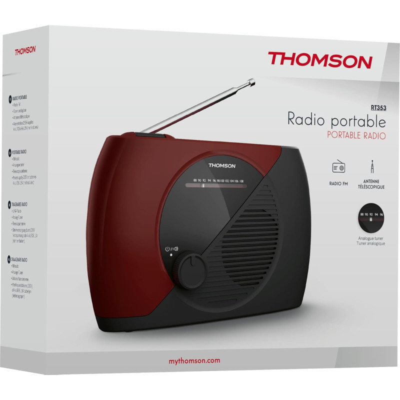 Radio FM Portable THOMSON RT353 - Tuner analogique - Antenne télescopique - Alimentation 230V ou piles 4 LR06 (AA) 1.5V (non incluses) - Couleur : Noir et Rouge - Garantie 1an
