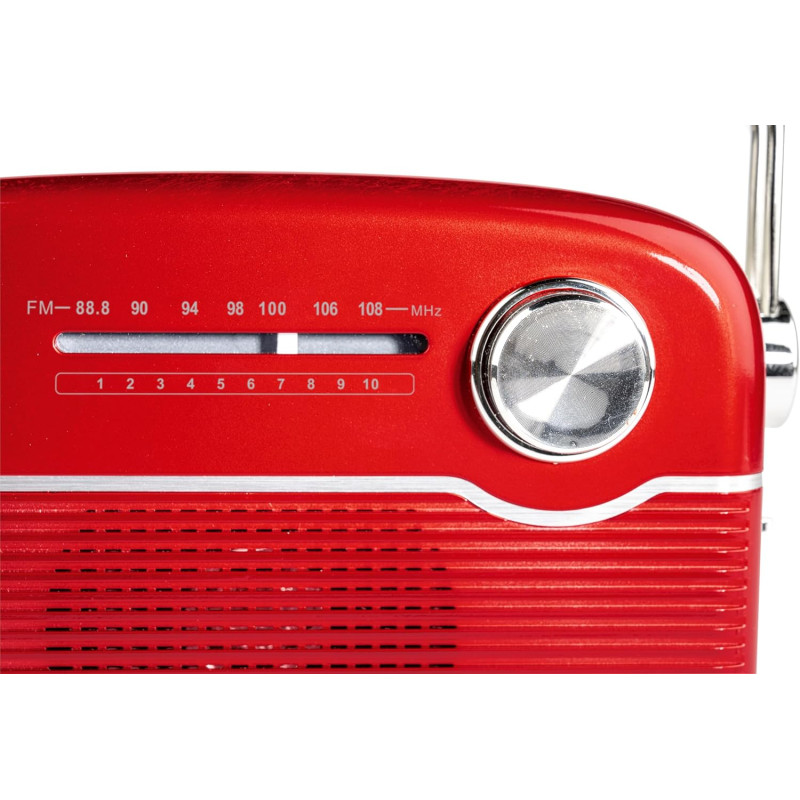 Radio Bluetooth à recharge solaire - Radio FM analogique - Connectivité : Bluetooth 5.4 - Antenne téléscopique chromée rétractable - Entrée auxiliaire 3.5mm - Batterie Li-ion rechargeable par USB-C de 1300mAh (câble inclus) ou par panneau solaire - Couleur Rouge - Garantie 1 an