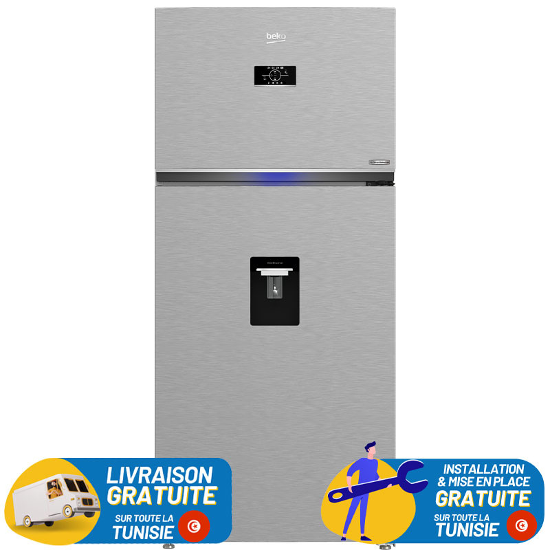 Réfrigérateur BEKO No Frost INVERTER Double Portes / 650 Litres / Silver avec Afficheur et Distributeur + 200DT Bon de Réduction