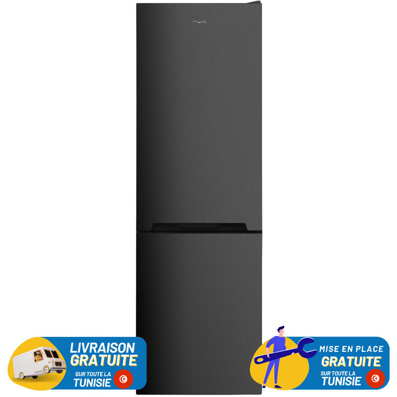 Système de Dégivrage : No Frost (Froid Ventilé) - Classe énergétique : 1 - Volume Brut Totale : 380 Litres - Volume Net Totale : 291 Litres (Réfrigérateur : 205 Litres , Congélateur : 86 Litres) - INVERTER : Non - Eclairage LED - Nombre d'étoiles congélateur : ★★★★ - 4x Clayettes - Dimensions (LxHXP) : 595 x 1860 x 600 mm - Type de Gaz : R600a - Couleur : Dark inox - Garantie 2 ans