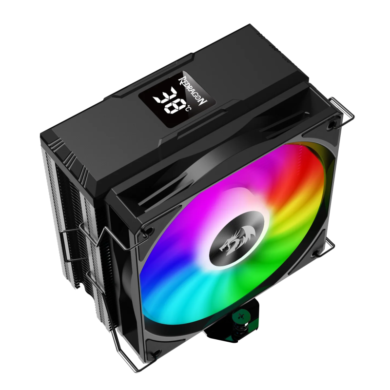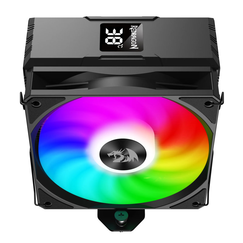 Ventilateur de boîtier Redragon CC-1013 - Dimensions : 152 x 75 x 133 mm - Affichage numérique de la température - Dimensions du ventilateur : 120 x 25 - Éclairage ARGB - Débit d'air maximal : 72,6 - Vitesse de rotation maximale : 1800 tr/min - Pression statique maximale (mmH2O) : 2,12 - Type de palier : hydrostatique - TDP : 180 W - Compatibilité : LGA / 1700 / 1200 / 115X / 1366 / AM5 / AM4 - Durée de vie : 40 000 h - Poids : 576 g - Couleur Noir - Garantie 1 an