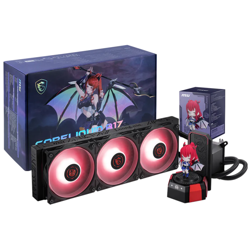 Kit Watercooling MSI CORELIQUID A17 MLG EDITION - Dimensions du radiateur: 360 mm - Matériau des tubes de refroidissement à eau: EPDM + IIR - 3 Fans - Dimensions du ventilateur: 120x120x25 mm - Débit d'air du ventilateur: 64.89 CFM - Roulement de ventilateur: Fusil portant - Vitesse du ventilateur: 500 à 2050 ± 150 tr/min - Durée de vie des ventilateurs: 40000 heures à 40 °C - Mode PWM - Longueur du câble: 600 mm - Éclairage par ventilateur: ARGB GEN2 - Connecteur RGB 3 broches - Durée de vie prévue de la pompe: 50000 heures - Niveau sonore de la pompe: 20 dBA - Vitesse de la pompe: 3400 tr/min ± 10 % tr/min - Connecteur de pompe: Connecteur 4 broches / 5V ARGB Connecteur 3 broches - Matériau de plaque froide: Cuivre - Dimensions: 100 x 145.4 x 102 mm - Prise en charge des sockets Intel: LGA 1851 / 1700 - Prise en charge des sockets AMD: AM5 / AM4 - Couleur Noir - Garantie 1 an