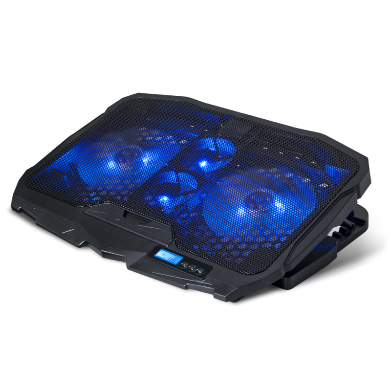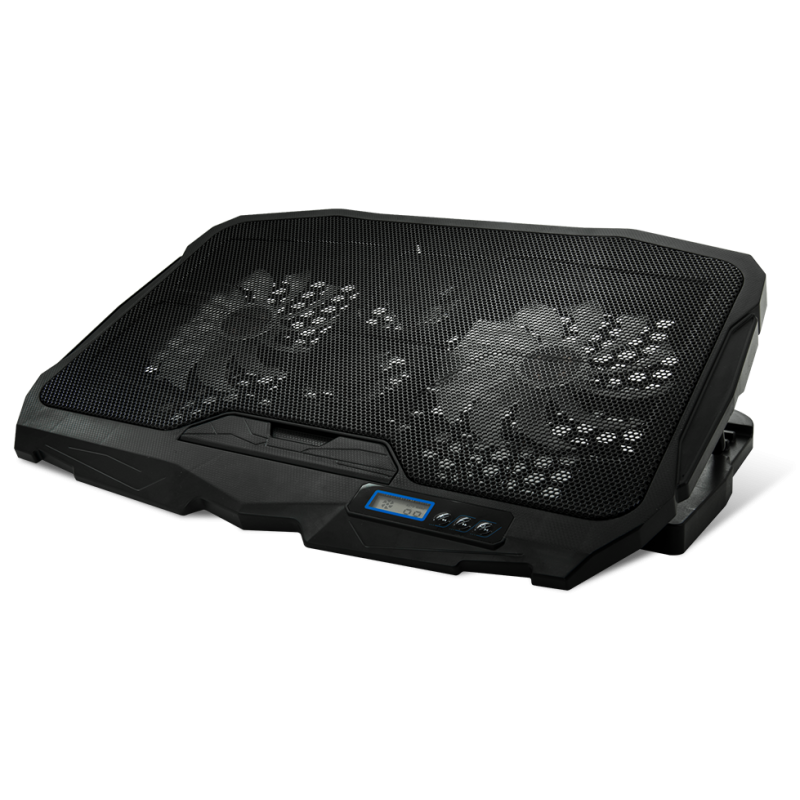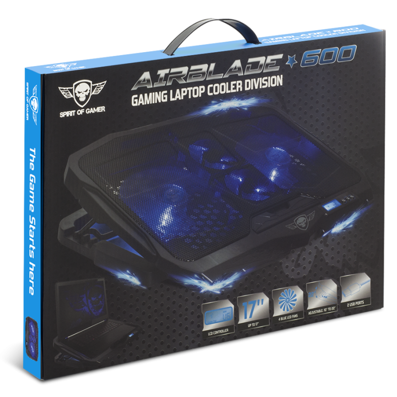 Support de Refroidissement Spirit of Gamer AIRBLADE 600 Pour Ordinateur Portable 17" - Ordinateur portable pris en charge: 10 à 17 pouces - Contrôleur: 6 vitesses, LCD, Marche/Arrêt, Ventilation 3 Modes - Rétroéclairage: Bleu - Hauteur réglable: 4 positions (10° à 22°) - Ventilateurs: 2x ventilateurs 70 mm / 2x ventilateurs 125 mm - Vitesse: 1500 tr/min - Flux d'air: 56 pi3/min - Niveau sonore: 15 dB(A) - Connexion: 2x USB - Longueur du câble: 60 cm - Matériels: Grille métallique en maille Plastique - Dimensions: 39 x 28 x 2.8 cm - Poids: 770g - Couleur Noir - Garantie 1 an
