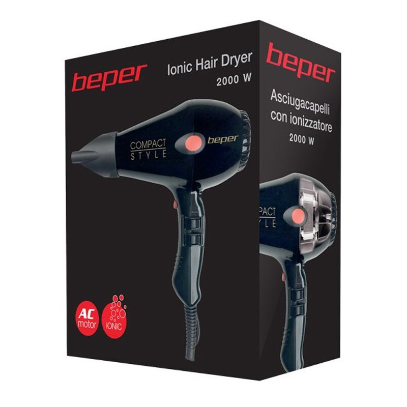 Sèche-cheveux Beper 40.401 - Puissance: 2000 W - 2 vitesses - 3 températures - Touche air froid - 2 Concentrateurs d'air et 1 diffuseur - Garantie 1 an