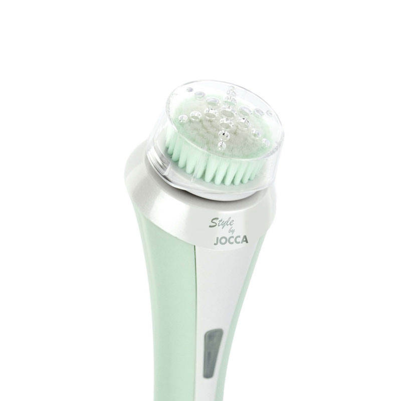 Set De Nettoyage Du Visage JOCCA - Brosse en cire douce : usage quotidien pour un nettoyage en profondeur - Brosse en silicone : exfolie et redonne de l'éclat à la peau - Nombre de vitesses : 2 vitesses - Témoin de charge - Etanchéité : IPX5 - Autonomie totale : environ 4 heures - Temps de charge : 8 heures - Câble de chargement USB inclus - Base et support de chargement - Couleur : Vert - Garantie 1an