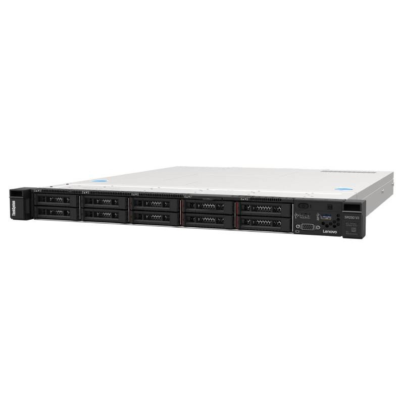 Serveur LENOVO ThinkSystem SR250 V3 Xeon E-2434 - Format : Rack 1U - Processeur : Intel Xeon E-2434 (3.40 GHz up to 5.00 GHz turbo max, 12Mo de mémoire cache, Quad-Core) - Mémoire : 16Go - Disque Dur : 2x 480Go SSD - SW RAID (0,1,5, 10) - Connecteurs : 3x USB 3.2 G1, 1x USB 2.0, RJ-45, 1x VGA, 1 port série - HS 800W Titanium, XCC2 Platinum, Rails - Garantie 3 ans