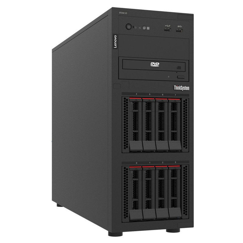 Serveur Lenovo ThinkSystem ST250 V3 XEON E-2468 - Format : Tour 4U - Processeur : Intel Xeon E-2468 (Hexa-Core 2.6 GHz / 5.2 GHz Turbo - 16 Threads - Cache 24 Mo) - Mémoire : 32Go - Disque Dur : 3x 1,2To HDD - Contrôleur RAID 5350-8i - Connecteurs : 1 X USB 2.0, 1 X USB 3.0, 1 X Série (RS-232), 2 X RJ45 Femelle, 1 X RJ45 Femelle (Management), 1 X VGA (D-sub 15 Femelle), 4 X USB 3.0 - 8 emplacements pour HDD SAS/SATA de 2.5 pouces - Sécurité : module TPM 2.0 - Système de refroidissement silencieux - Alimentation : 800W - Garantie 3 ans