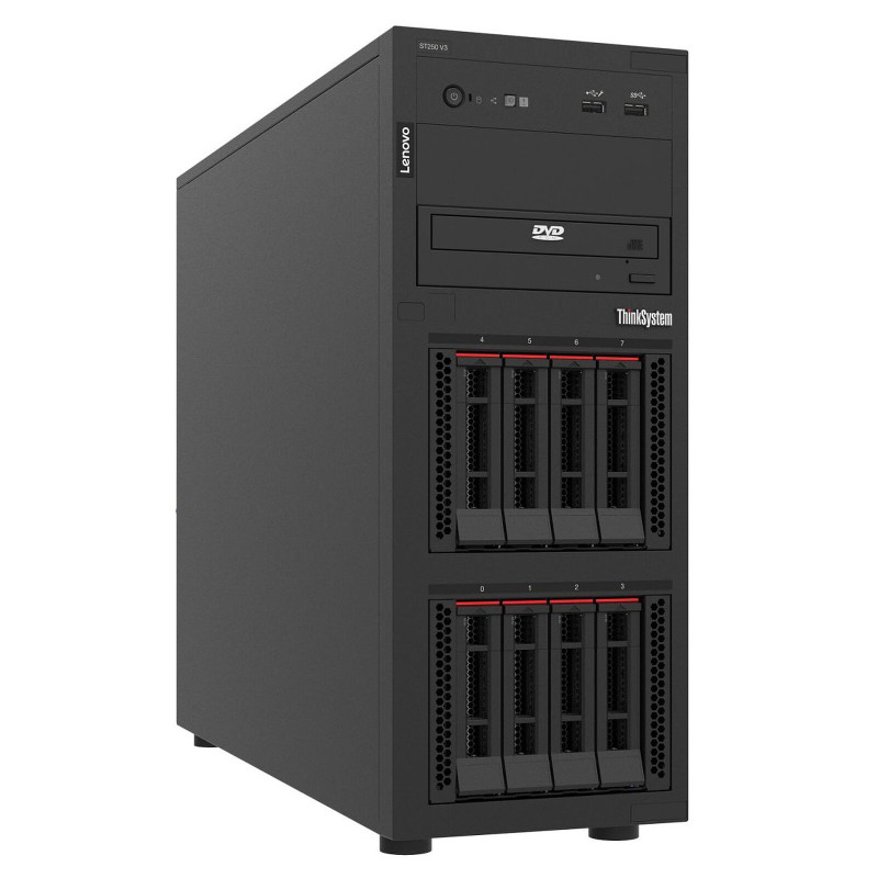 Serveur LENOVO THINK SYSTEM ST250 V3 XEON E-2436 - Format : Tour 4U - Processeur : Intel Xeon E-2436 (Hexa-Core 2.9 GHz / 5 GHz Turbo - 12 Threads - Cache 18 Mo) - Mémoire : 32Go - Disque Dur : 3x 1,2To HDD - Contrôleur RAID 5350-8i - Connecteurs : 1 X USB 2.0, 1 X USB 3.0, 1 X Série (RS-232), 2 X RJ45 Femelle, 1 X RJ45 Femelle (Management), 1 X VGA (D-sub 15 Femelle), 4 X USB 3.0 - 8 emplacements pour HDD SAS/SATA de 2.5 pouces - Sécurité : module TPM 2.0 - Système de refroidissement silencieux - Alimentation : 800W - Garantie 3 ans