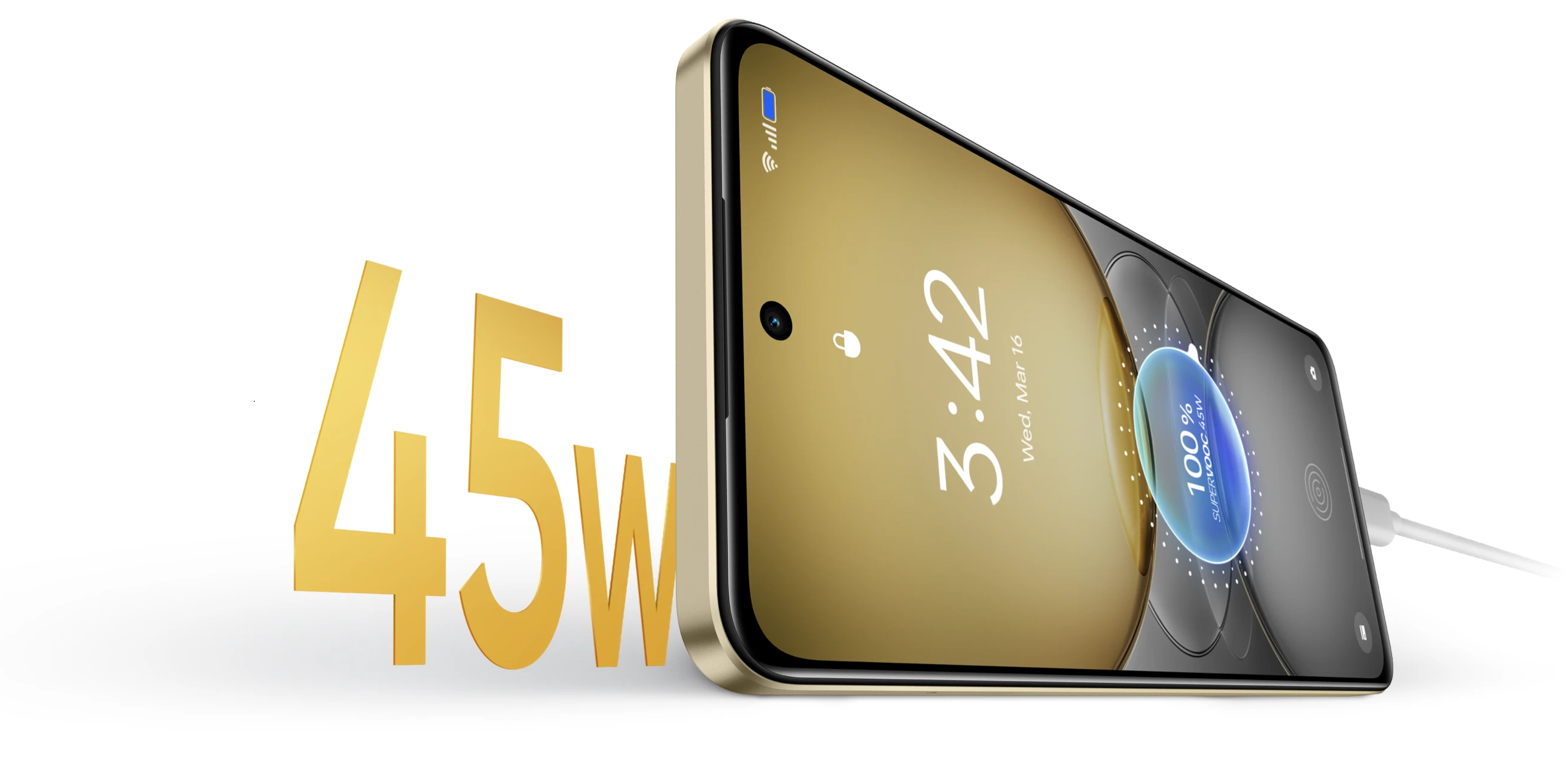 La charge rapide de 45 W permet de charger jusqu'à 100 % en 90 minutes. La charge intelligente garantit que votre appareil se charge efficacement et en toute sécurité.