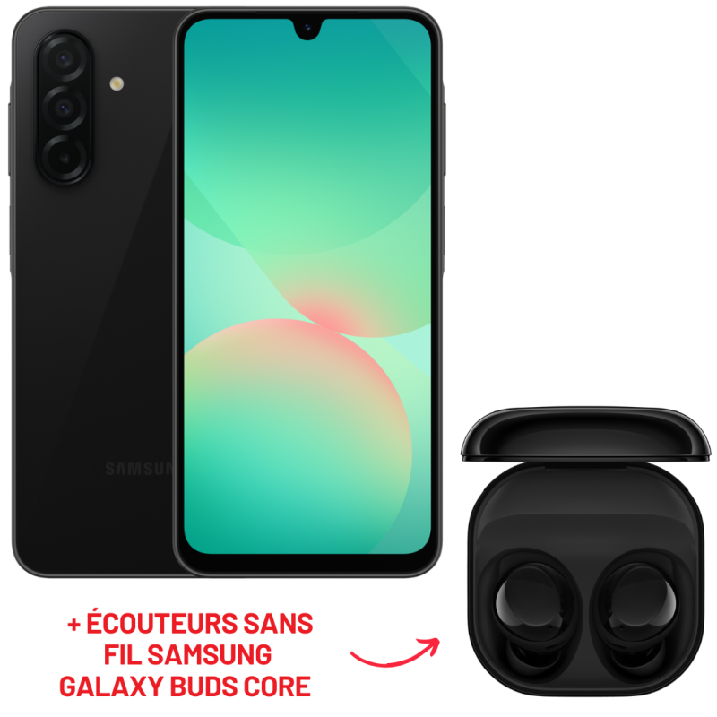 Smartphone Samsung Galaxy A26 5G 12/128 Go / Noir + Écouteurs sans fil Samsung Galaxy Buds core