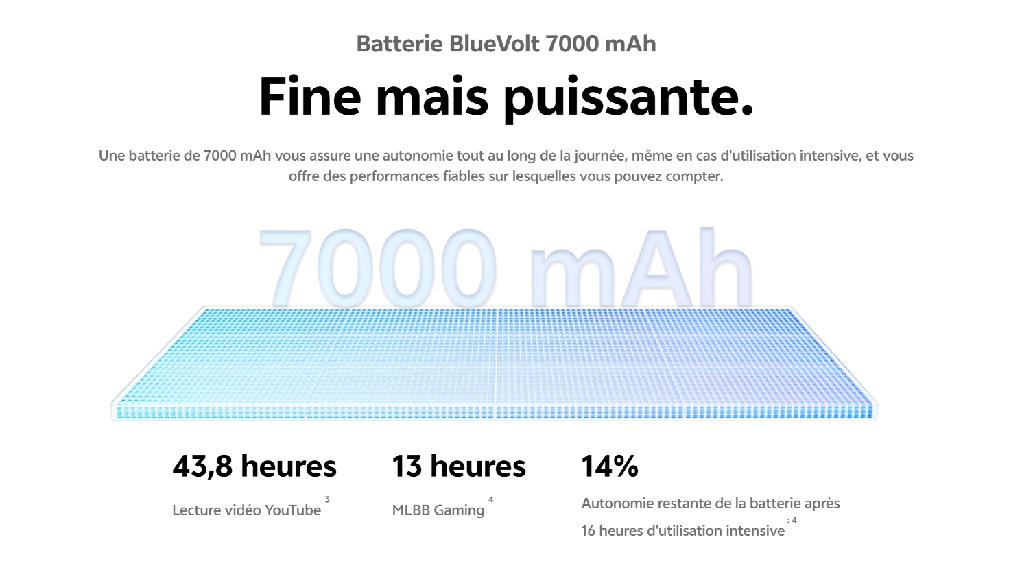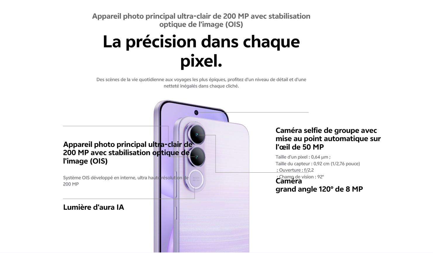 Écran AMOLED 6.83" (2800 × 1260 pixels), 120 Hz - Processeur Mediatek Dimensity 7360 Turbo (4 nm) - RAM 12 Go - Stockage 256 Go - Caméra principale ultra-nette : 200 Mpx f/1.88 (grand angle) + 8 Mpx, f/2.2 (ultra grand-angle) | Caméra selfie : 50 Mpx f/2.0 - Réseau 5G - Wi-Fi - Bluetooth 5.4 - Système d'exploitation : OriginOS 6, Android 16 - Indice de protection IP : IP68 et IP69 - Batterie : 7000 mAh - Charge Rapide 90 W (USB-C) - Capteur d'empreintes digitales optique intégré à l'écran - Emplacement Pour Carte SIM : 2 nano SIM - Poids : 202 g - Couleur Bleu - Garantie 1 an