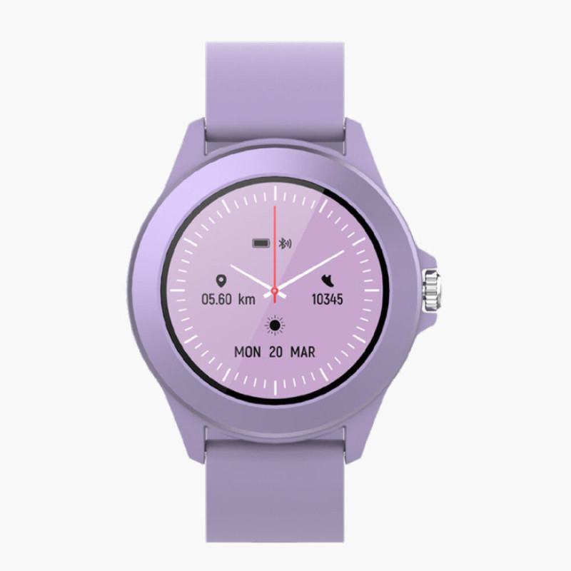 Smartwatch Forever Colorum CW-300 - Type d'écran: 1.22" IPS - Résolution: 240x240 px - Bracelet : Silicone - Espace entre les bracelets : 20 mm - Longueur du bracelet : 240 mm - Compatibilité : iOS ≥ 12.0 ; Android ≥ 6.0 - Capacité de la batterie : 200 mAh - Temps de charge : 2 heures - Etanche : certifié IP68 - Fonctions : Heure et date, Réveil, Podomètre, Moniteur de fréquence cardiaque, Moniteur de sommeil, Caméra à distance, Historique des activités, Rappel d'inactivité, Rappel d'hydratation, Notifications, Compteur de calories, Chronomètre, Modes sport, Heure, Calendrier menstruel, Changer la face d'affichage, Trouver une montre, Trouver un téléphone, Mode ne pas déranger, Notifications SMS, Illumination d'un simple mouvement du poignet, Contrôle de la musique - Poids : 45g - Tour de poignet : 150 mm - 220 mm - Couleur Violet - Garantie 1 an