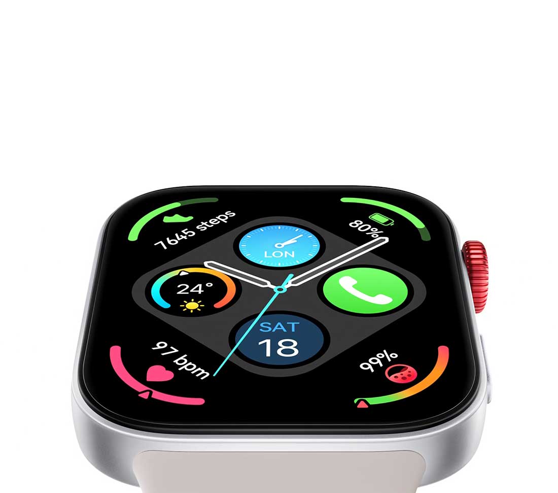 Tournez votre poignet pour bénéficier d'une vue exceptionnelle sur un large écran. Des bordures très étroites et un rapport4 écran/corps de 77,4% vous aspirent dans un monde visuel vibrant qui reste clair comme le jour, même sous la lumière directe du soleil, avec un taux de rafraîchissement jusqu'à 60 Hz et une luminosité auto-ajustable.