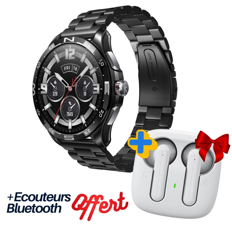 Montre Connectée Kieslect Watch Actor Leading - Écran LTPO 1.6" - résolution : 480 x 480 pixels, 1000 nits - 2 boutons + couronne rotative (acier inoxydable) - Mémoire : 2 Go - Bluetooth 5.3 - Batterie : 500 mAh - Autonomie : 15 jours - Chargement magnétique - Systèmes de positionnement GPS double bande et 6 satellites - Appel téléphonique Bluetooth clair et stable - Plus de 150 modes sportifs - Étanche jusqu'à 5 ATM - Surveillance de la santé 24h/24 - Compatible avec iOS et Android - Matériel : Lunette en céramique, aluminium / Sangle : Acier - Dimension : Φ46,5 mm - Poids : 38 g (sans sangle) / 61,0 g (avec sangle) - Capteurs (capteur de santé) : Solution de détection de présence (PD double, lumières tricolores doubles) - Couleur Noir - Garantie 1 an