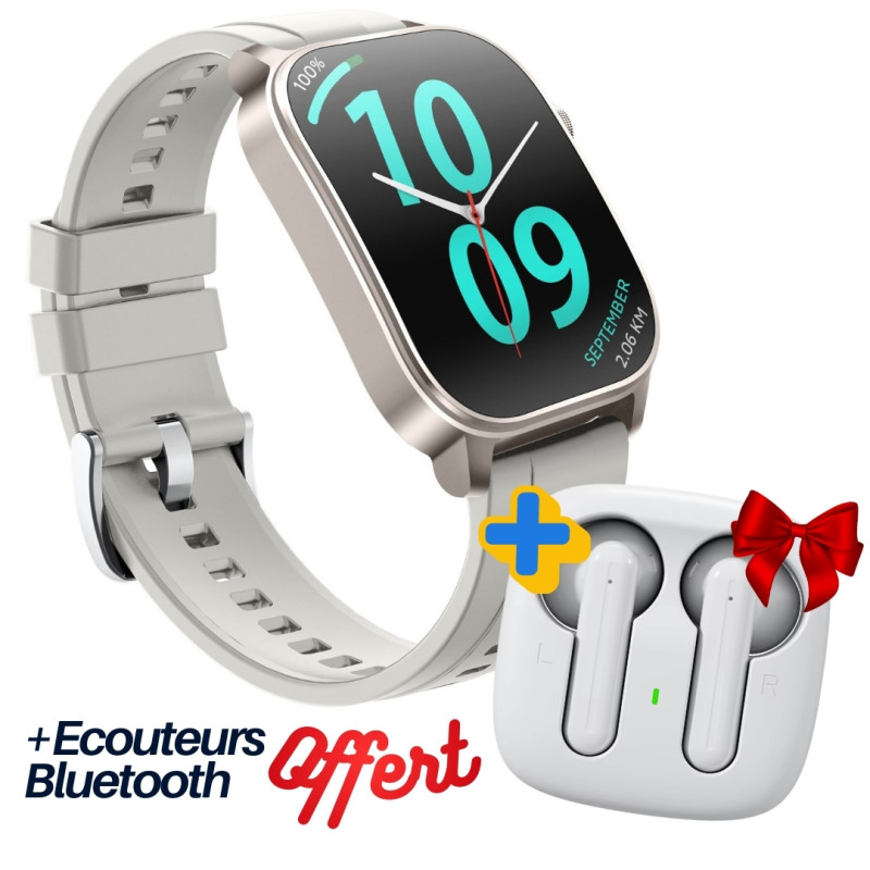 Montre Connectée Kieslect Calling Watch KS 3 Elite - Écran AMOLED incurvé adaptatif 2.1" - résolution : 410 x 502 pixels, 1000 nits - Écran tactile : verre haute dureté - taux de rafraîchissement : 60 Hz - Mémoire : 1 Go - Bluetooth 5.3 - Batterie : 400 mAh - Autonomie : 15 jours - Économiseur de batterie 50 jours - GPS : positionnement GPS de précision et 6 systèmes satellites - Appel téléphonique Bluetooth clair et stable - Plus de 150 modes sportifs - Étanche jusqu'à 5 ATM - Surveillance de la santé 24h/24 - Compatible avec iOS et Android - Matériau : Aluminium / sangle : silicone - Application : KS OS - Microphone - haut-parleur - Dimension : 46.8 x 38.4 x 11.6 mm - Poids : 30 g (sans sangle) / 46 g (avec sangle) - Capteurs (capteur de santé) : Double PD+2 LED - Couleur Beige - Garantie 1 an