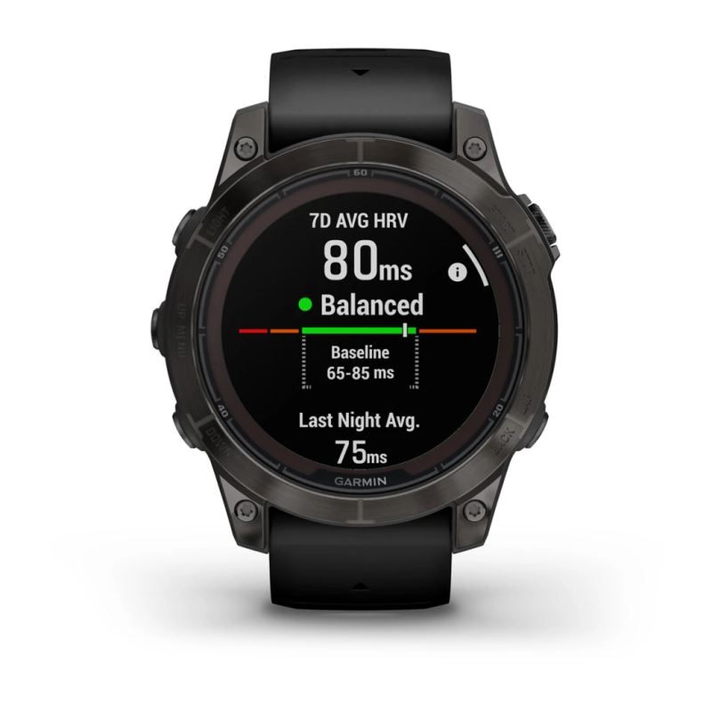 FOND CARTOGRAPHIQUE INTÉGRÉ - Application Garmin ECG - Type d'affichage : AMOLED - Ecran tactile couleur - Résistance à l'eau 10 ATM - Lampe torche LED - Verre solaire - Bracelet Silicone - Matériau du verre : Power Sapphire - boîtier Polymère renforcé de fibres avec dos du boitier en titane - Compatible avec les bracelets de montre QuickFit (22 mm) - Taille du boîtier : 47x47x14.5 mm - Format d'affichage : 35.02 mm (1.3") - Définition d'écran : 260×260 px - Batterie Lithium-ion - Autonomie de la batterie : jusqu'à 18 jours/22 jours avec captation solaire / Mode économie d'énergie jusqu'à 57 jours/173 jours avec captation solaire - Chargeur à fiche Garmin - Mémoire : 32 Go - Moniteur de fréquence cardiaque - Capteurs : GPS,... - Connectivité : Bluetooth, ANT+, Wi- Fi - Compatibilité avec les smartphones : iPhone, Android - Garantie 1 an