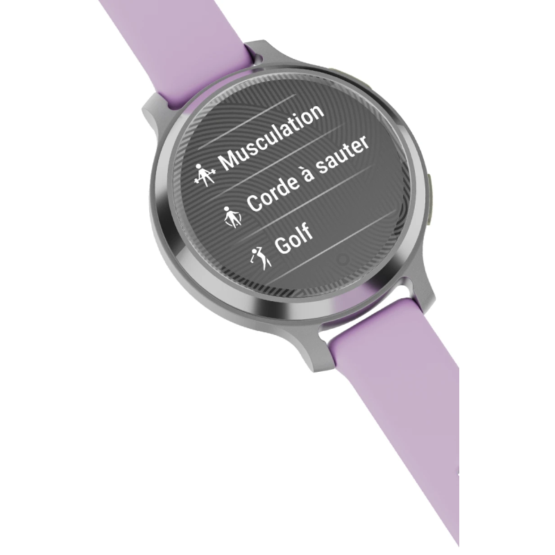 Montre Connectée Garmin Lily 2 Metallic Lilac avec bracelet en silicone lilas