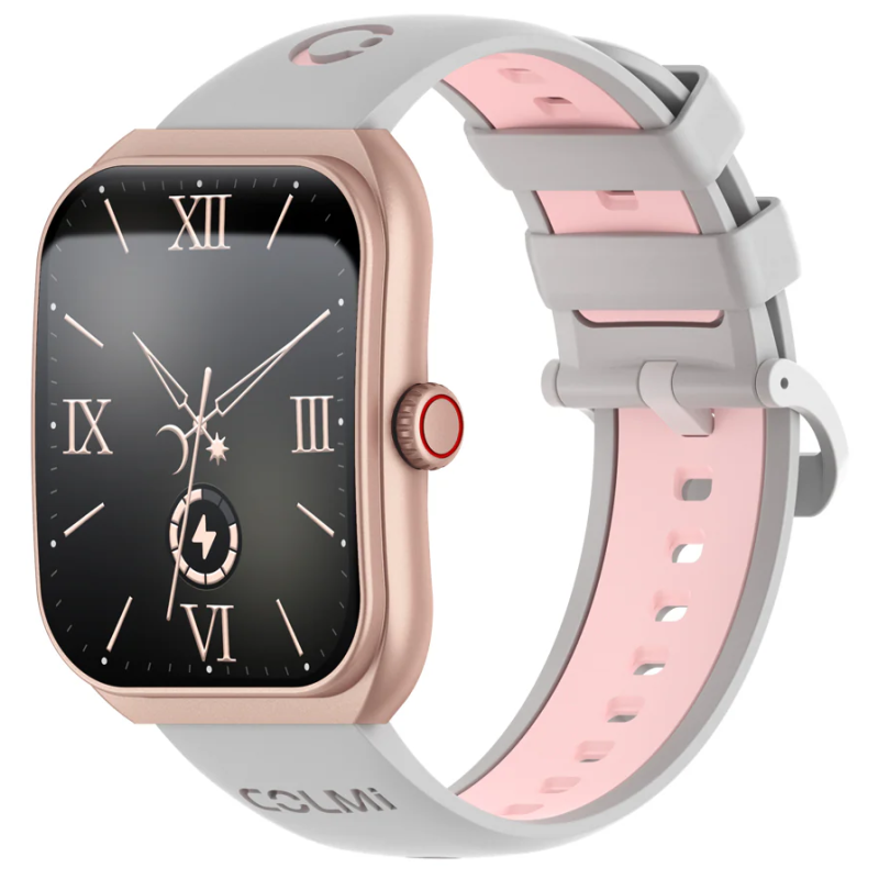 Montre connectée COLMI P86 - Écran AMOLED 1,93 pouce - Résolution : 368 x 448 pixels - Connectivité : Bluetooth 5.3 - batterie lithium-polymère - Capacité batterie : 400 mAh - Temps de charge : Environ 2h - Autonomie : 7 à 12 jours - Application : COLMI Fit - Bracelet en silicone - Largeur de la sangle : 22 mm - Étanche à 1 ATM et conforme à la norme IP68 - Compatibilité : Android 5.0 et versions ultérieures, iOS 10.0 et versions ultérieures - Plus de 100 modes sportifs - Santé des femmes - Surveillance 24h/24 et 7j/7 - Couleur : Rose - Garantie 1 an