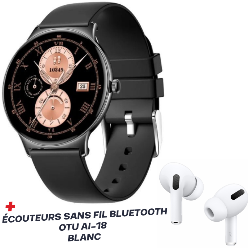 Montre Connectée COLMI V89 Silicone / Noir Avec Écouteurs Sans Fil Bluetooth OTU AI-18 Blanc