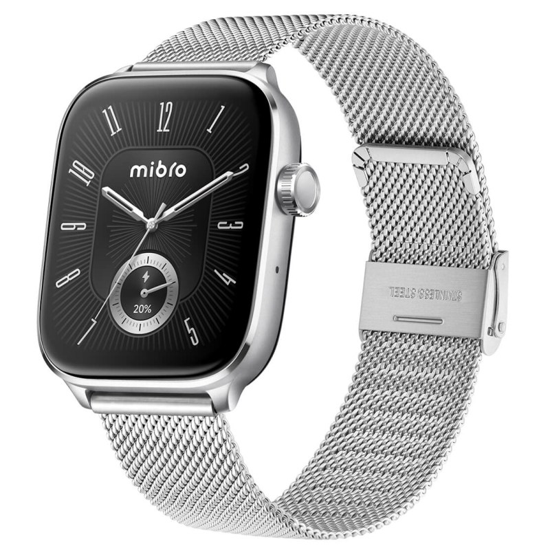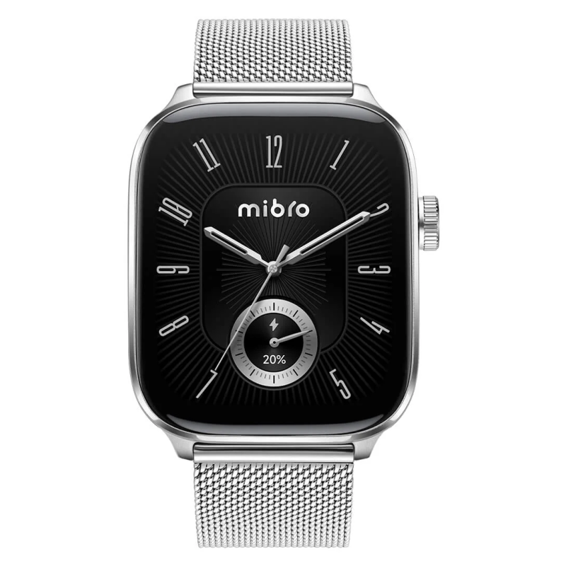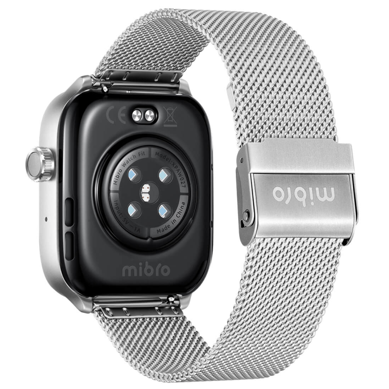 Montre Connectée Mibro Fit 44 mm - Écran carré AMOLED 1,75" - Résolution : 390 x 450 px - Connectivité Bluetooth 5.3 - Autonomie de la batterie : Autonomie en veille (état non connecté) : environ 30 jour, Utilisation quotidienne (mode appel Bluetooth) : environ 8 jours, Mode musique : 6 heures, Mode appel Bluetooth : 4,5 heures, Mode GPS : 15 heures - Port de chargement magnétique - Positionnement par satellite : GPS/Beidou/GLONASS/Galileo/QZSS - Capteur : PPG Fréquence cardiaque/Oxygénation sanguine/Accélération/Gyroscope/Altitude/Baromètre - étanche : 5 ATM - Température de fonctionnement : 0°C~45℃ - Matériel : Alliage d'aluminium+ (PC+10%GF) - Couleur Silver - Garantie 1 an
