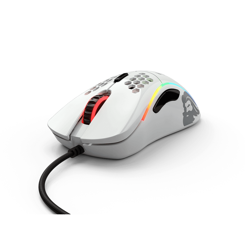 Souris Gaming Glorious Model D - Souris filaire - Idéal pour les petites et moyennes mains - Capteur optique Pixart 3360: résolution jusqu'à 12 000 DPI - Rétroéclairage RGB - 6 boutons - Interrupteurs Omron: durée de vie de 20 millions de clics - Patins G-Skates 100% PTFE pour une glisse incroyable - Vitesse maximale de suivi: 250 ips - Accélération: 50G - Fréquence: 1000 Hz (1ms) - Connecteur: USB 2.0 - Longueur du câble: 2 m - Dimensions : 128 x 33 x 42 mm - Poids: 69 grams ± 2 g - Compatible Windows, Mac, Linux - Garantie 1 an