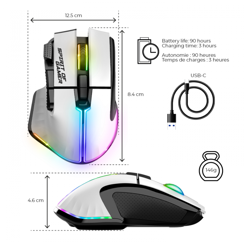 SOURIS Gamer sans fil SPIRIT OF GAMER PRO-M5 RGB / Blanc