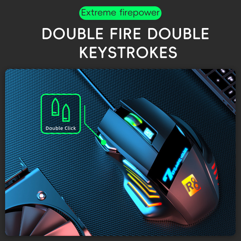 SOURIS 7D Gaming RGB LED Light R8 / jusqu'à 3 600 DPI / Noir