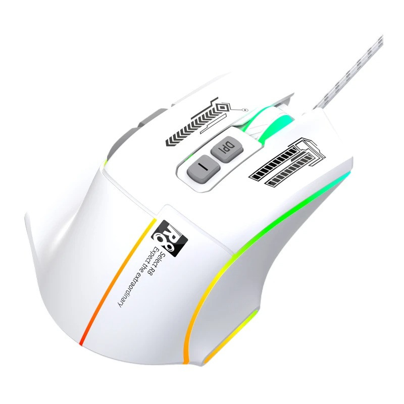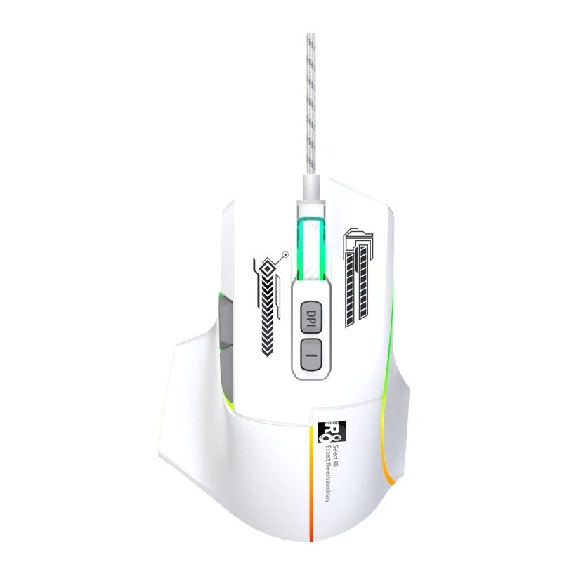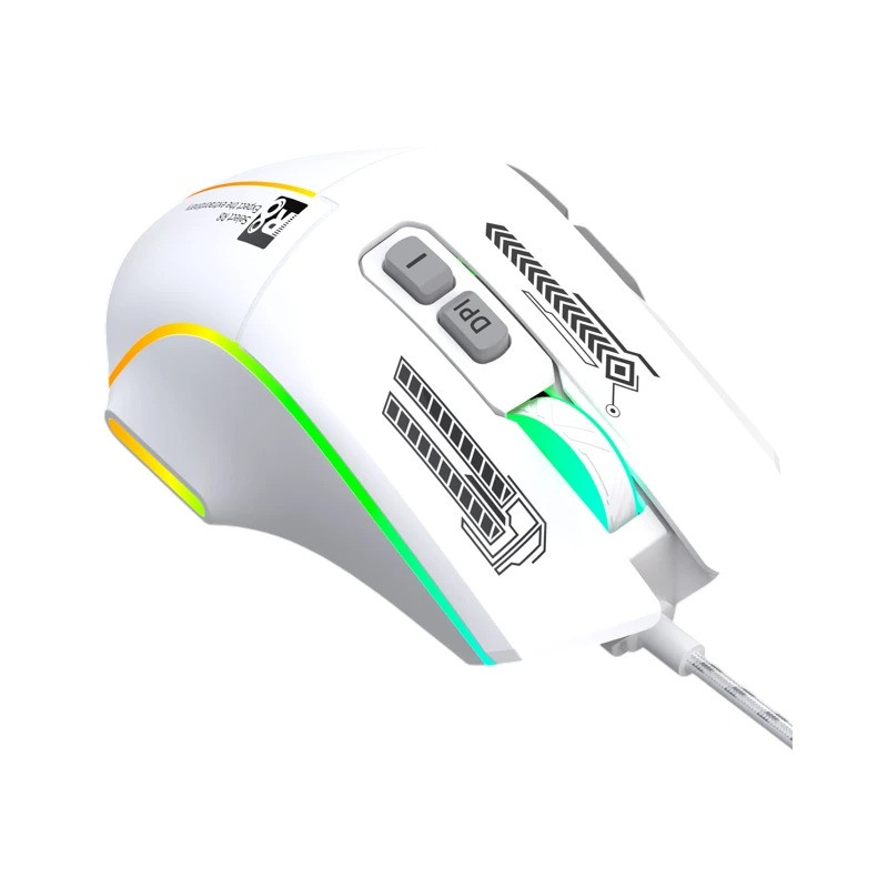 SOURIS Optique 7D Gaming R8 - 7 boutons - Conception ergonomique - Résolution : 3600 dpi - Lumière LED RGB - Connectivité : USB - Interface : USB 2.0 - Durée de vie des frappes : 10 millions de fois - Couleur Blanc