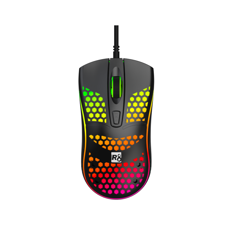 Souris Gaming R8 - Bouton 4D - Résolution : 800-1200-1600 DPI - Durée de vie des touches : 10 millions de clics - Connexion USB - Longueur du câble : 1,2 m - Couleur Noir