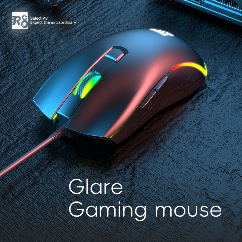 SOURIS R8 Gaming - Boutons : 6D - Résolution : 1200-2400-3600 dpi - Lumière LED : RGB - Connexion USB - longueur du câble : 1.25 m - Durée de vie d'un coup de touche : 1 million de fois - Couleur Noir