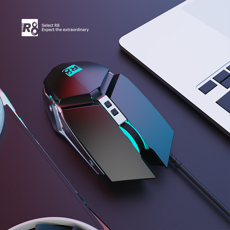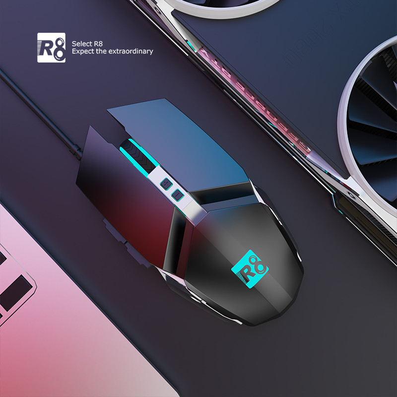 SOURIS R8 Gaming - boutons : 7D - Résolution : 1200-2400-4800-7200 DPI - Lumière LED : RGB - Connexion USB - Durée de vie d'un coup de touche : 1 million de fois - Couleur Noir