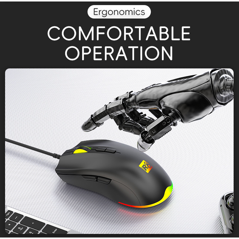SOURIS R8 Gaming - boutons : 7D - Résolution : 7200 DPI - Lumière LED : RGB (17 modes) - Connexion USB - Couleur Noir
