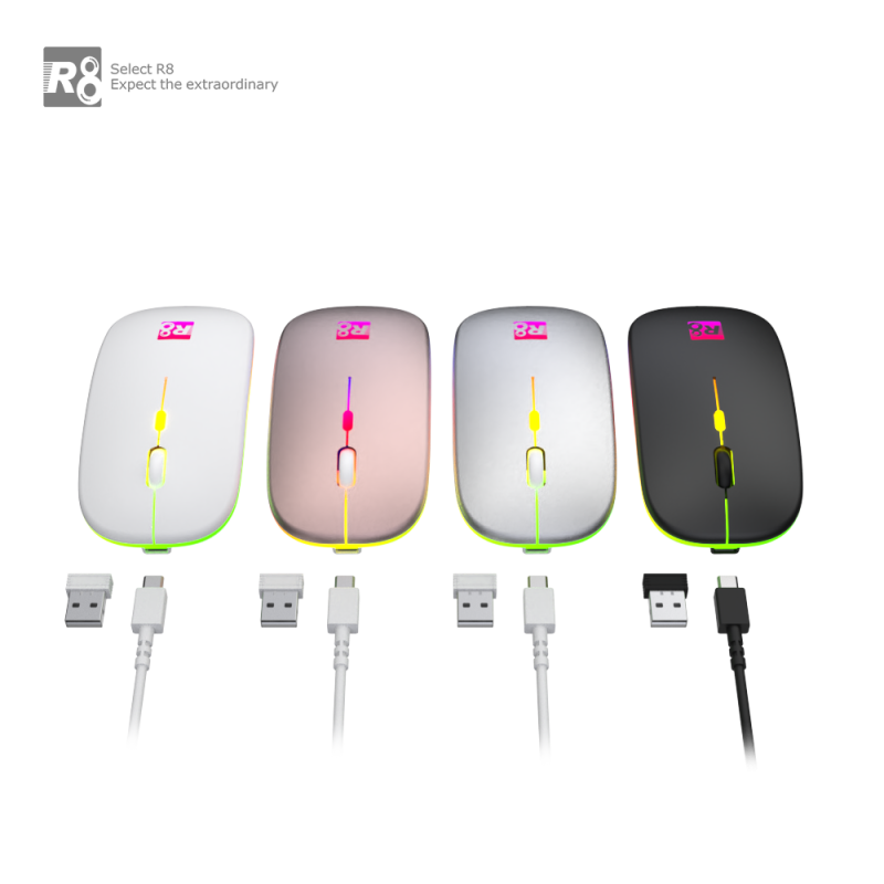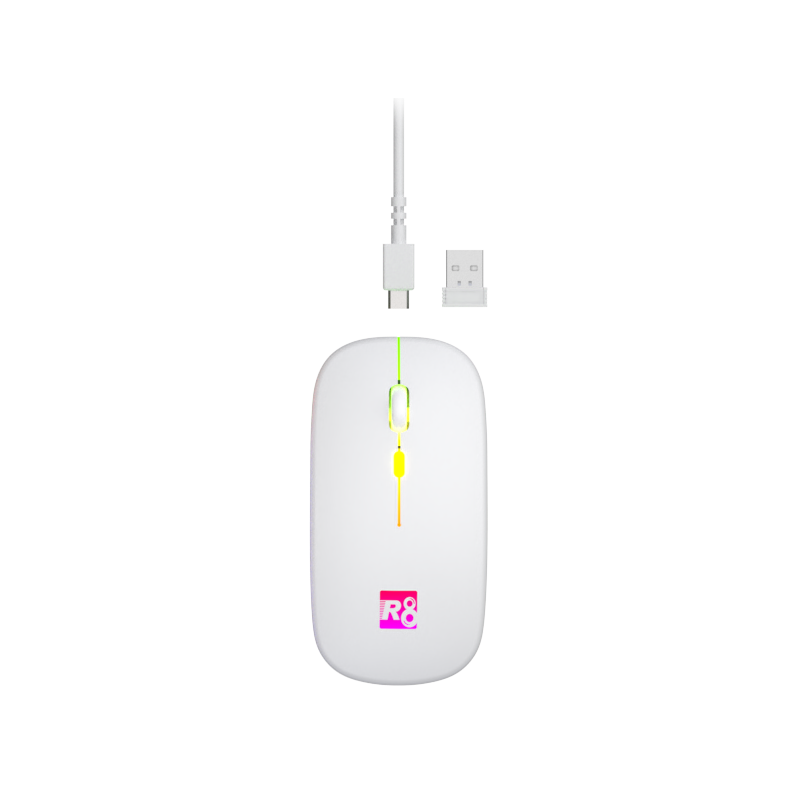 Souris sans fil Rechargeable R8 1715 - Boutons : 4D - Résolution : 1000-1200-1600 dpi - éclairage RGB - Connexion sans fil - Couleur Blanc